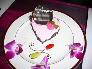 そういえば、ハネムーナーで参加しているのでケーキがついていた。