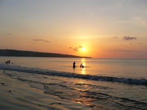 この女性二人組みも、キャンドルナイトディナーのため、海で時間を潰しているとのこと。