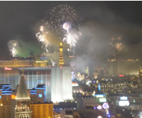 ストリップ通りにあるホテルの屋上からどんどん打ち上げられる花火。 |