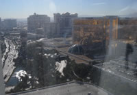 ホテルからの眺め。左にある道がストリップ通り。正面金色の建物がミラージュホテルです。 |