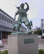 岡山駅前の桃太郎像。キジ、サル、イヌもちゃんといます。 |