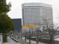 鉄板焼き「けやき」が入っているホテル・ニューオータニ大阪と手前の黄色い建物が大阪MBS劇場です。 |